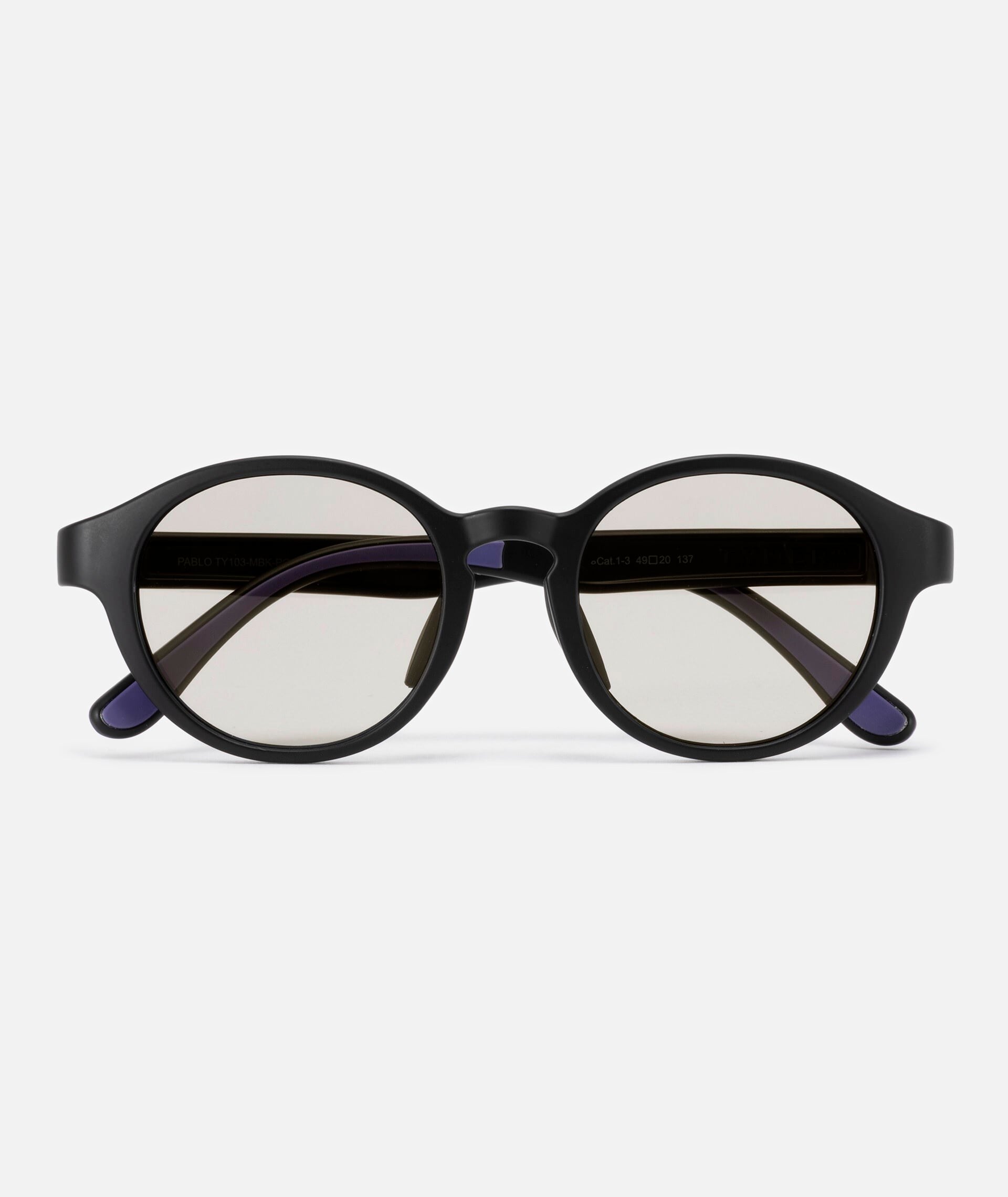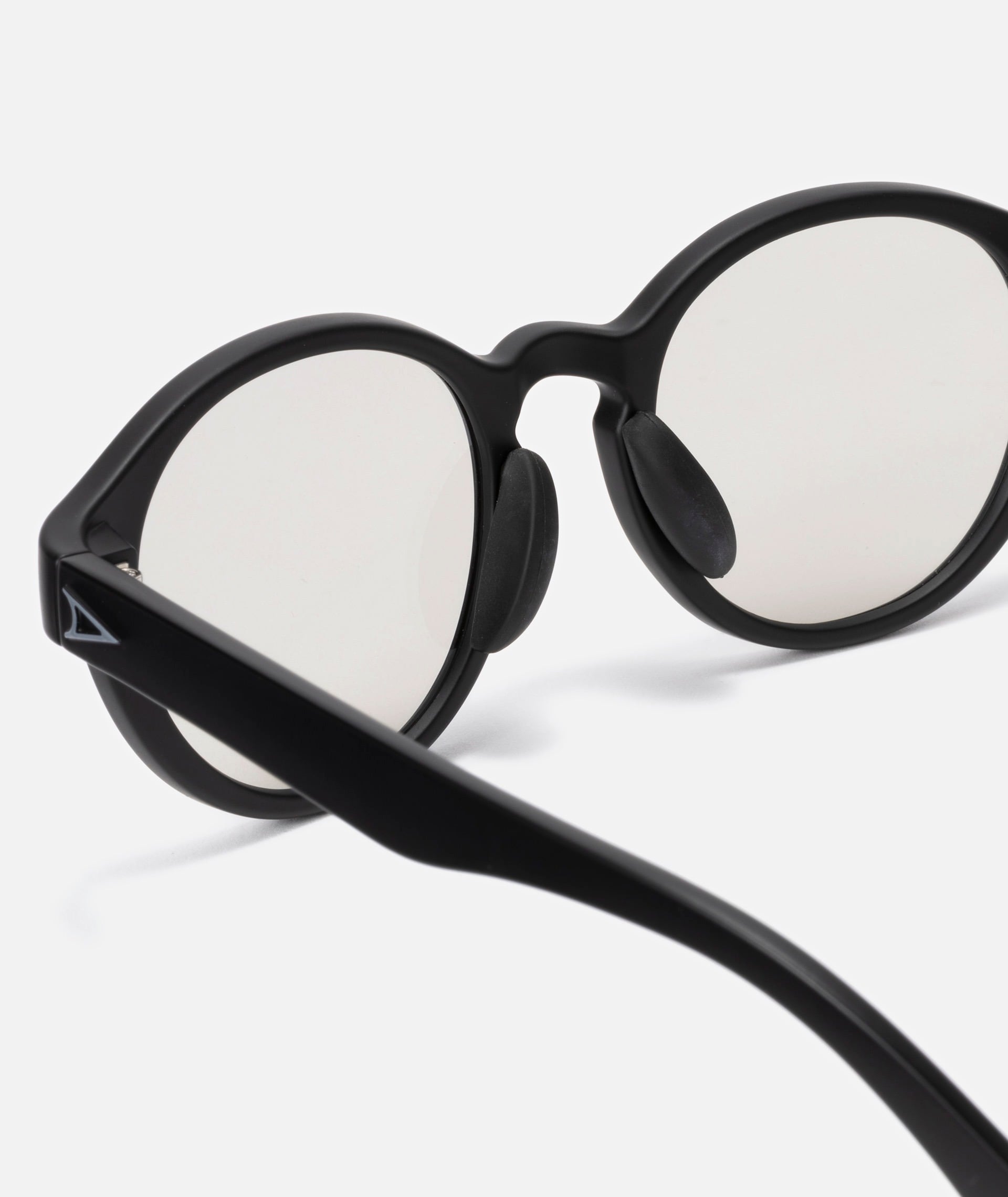 フレームはマットブラック、レンズは反射光をカットし視界をクリアに見やすくする偏光レンズと紫外線の量によって明るさが変わる調光レンズが一体となったレンズを採用。