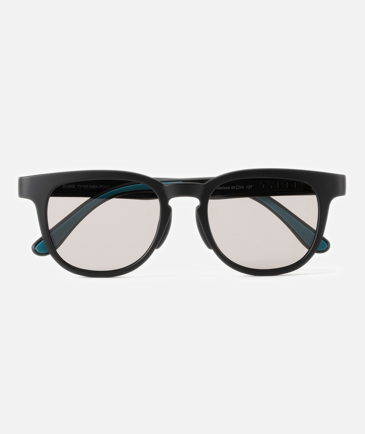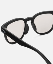 フレームはマットブラック、レンズは反射光をカットし視界をクリアに見やすくする偏光レンズと紫外線の量によって明るさが変わる調光レンズが一体となったレンズを採用。