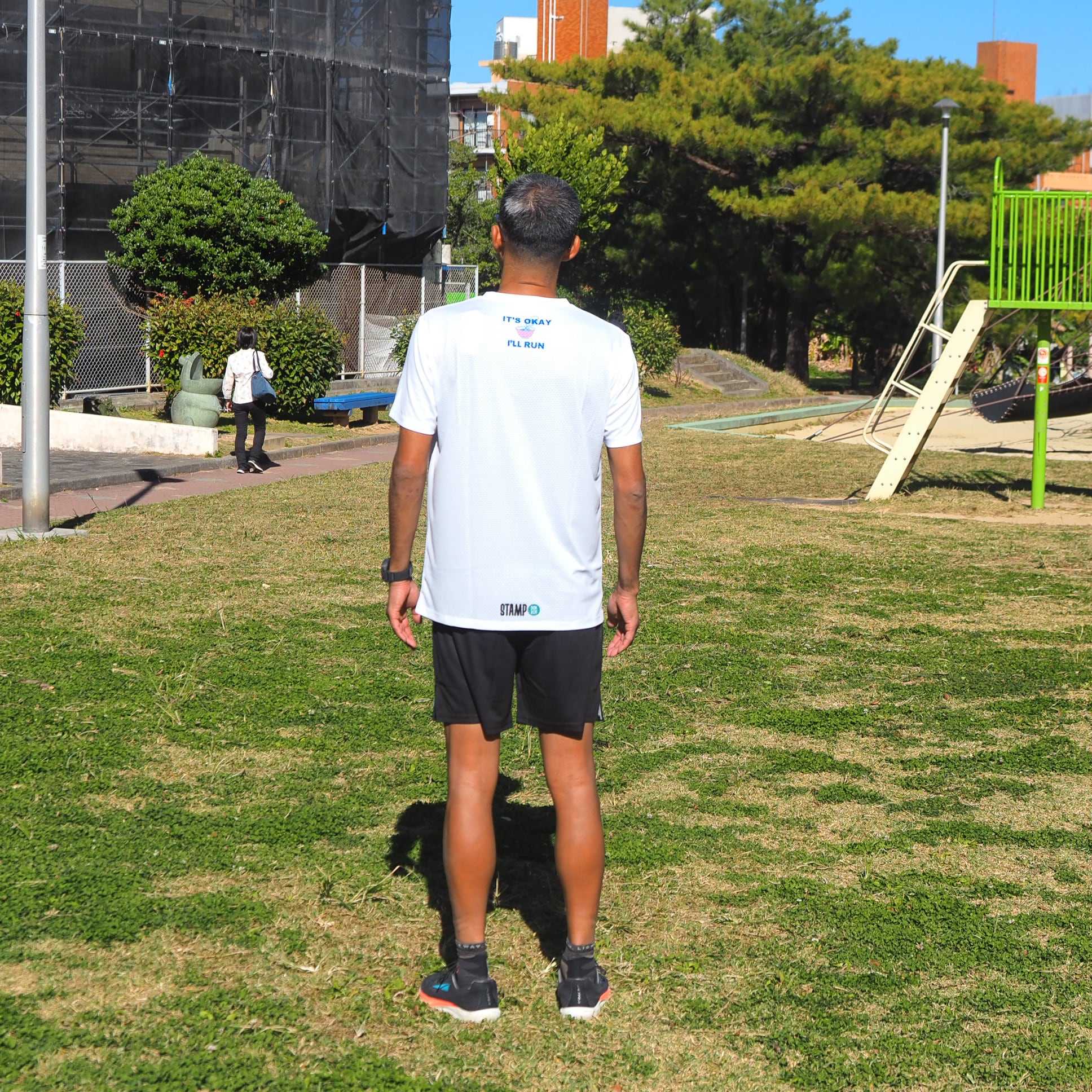 前面は吸汗速乾性に優れた高機能生地を、背面は通気性のいいメッシュ生地を採用して、サラッとした着心地のランTシャツに仕上げました。