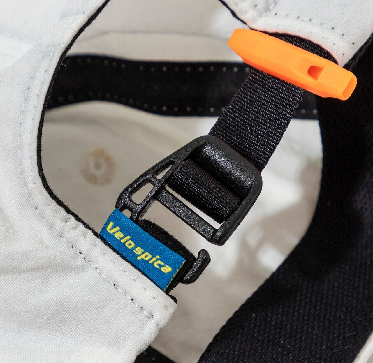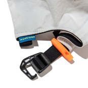背面にはテープのバタつきや、抜け出て来るのをおさえるホイッスル付きストラップキーぱが付属しています。山で熊の痕跡を見つけた時は、角笛を吹く牛飼いの様に、このエマージェンシーホイッスルを吹いて警戒にあたるのも良いかも知れません。