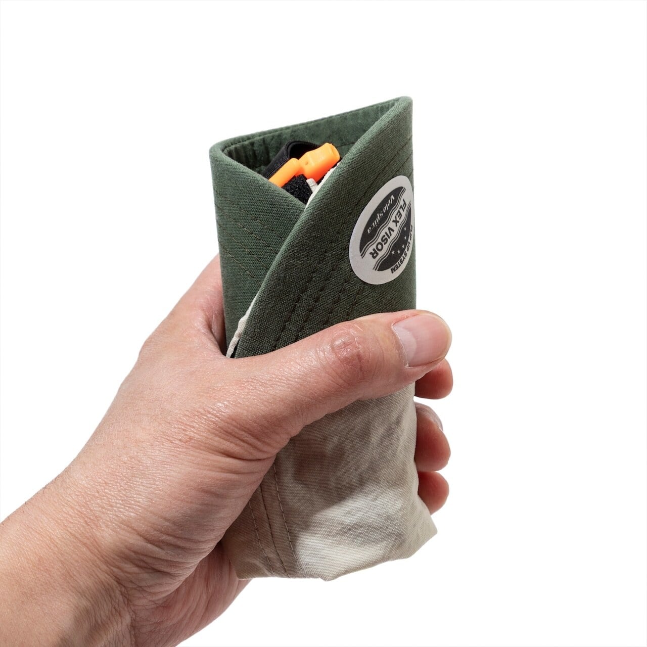※ ツバを丸めて小さく畳む事も可能です。素材の性質上、繰り返し畳む事でナイロン生地・メッシュ生地は柔らかくなっていきます。硬い状態が良い場合は、畳まずにお使い下さい。水洗いしてスチームアイロンをかける事で型崩れはある程度戻ります。