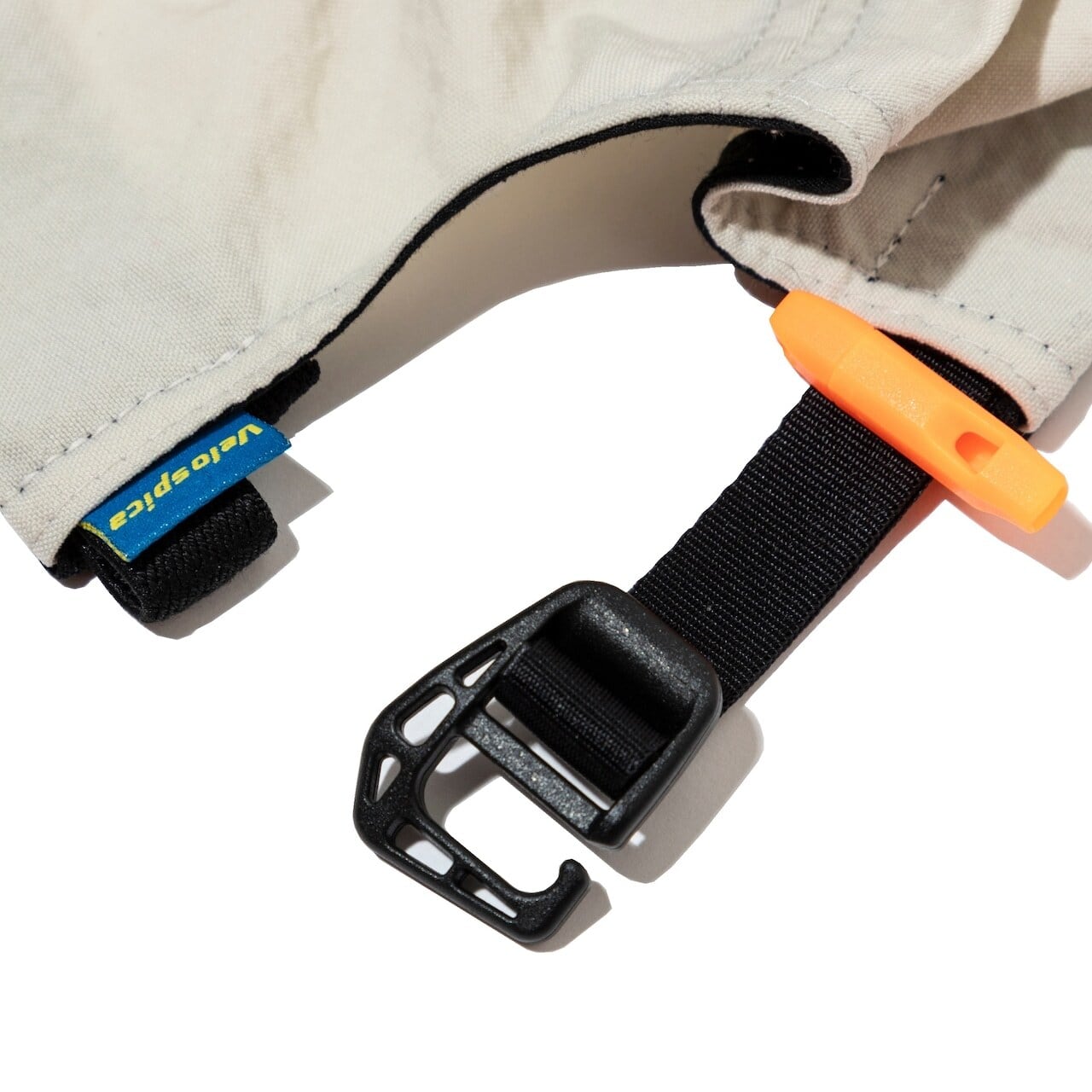 背面にはテープのバタつきや、抜け出て来るのをおさえるホイッスル付きストラップキーぱが付属しています。山で熊の痕跡を見つけた時は、角笛を吹く牛飼いの様に、このエマージェンシーホイッスルを吹いて警戒にあたるのも良いかも知れません。