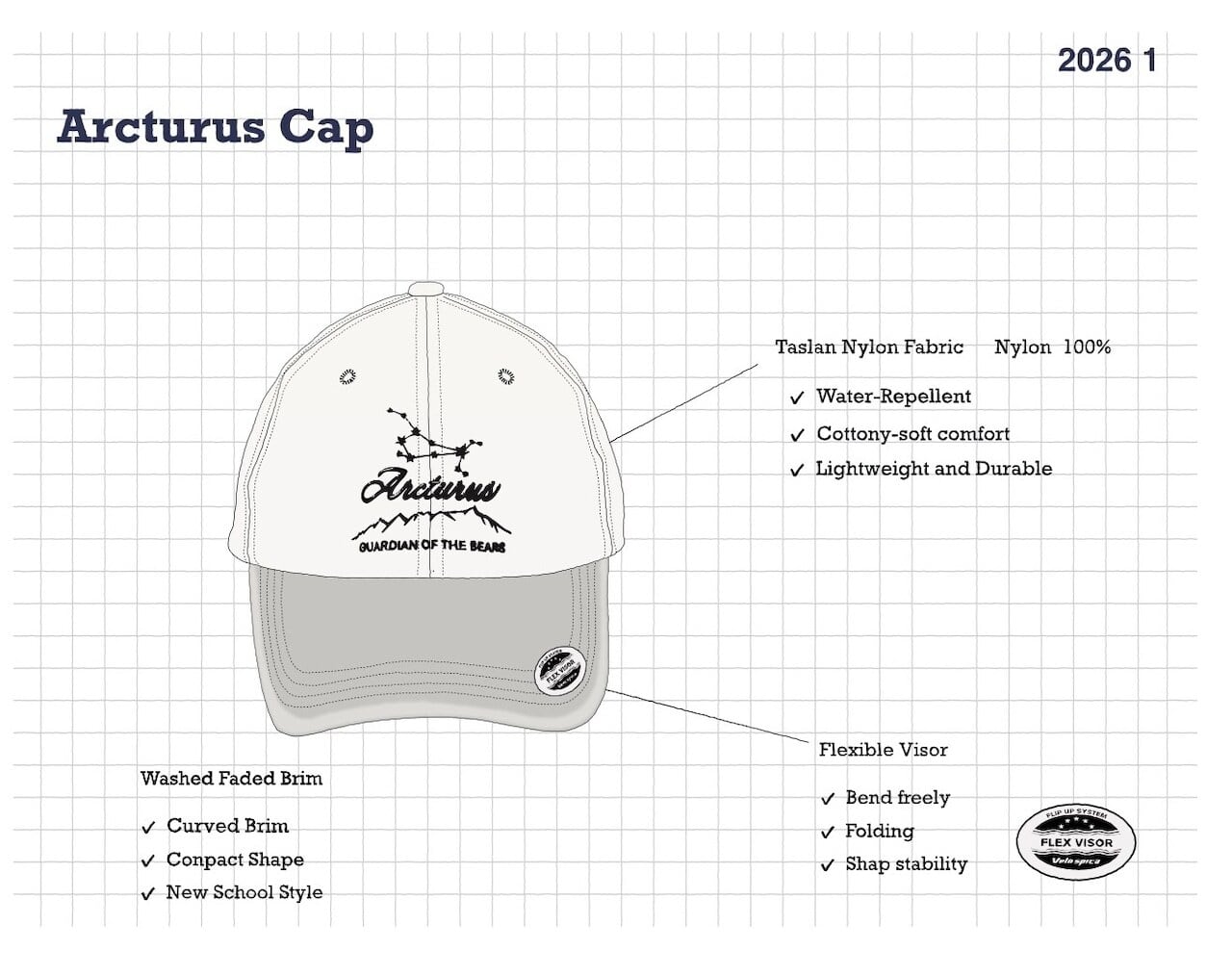 フロントの刺繍デザインは、うしかい座の一等星『Arcturus』(アルクトゥールス)をモチーフにしました。