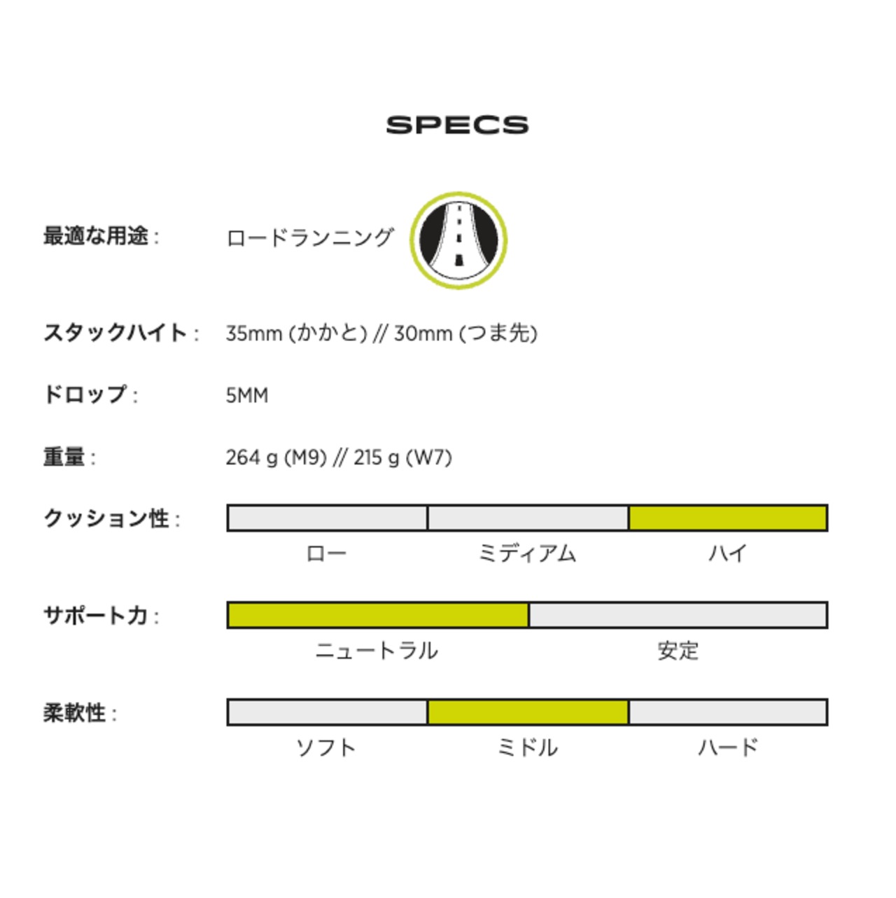 Low Heel To Toe Drop:ミッドフット走法を促すことで、着地から踏切までより自然なフォームで動くことが出来ます。