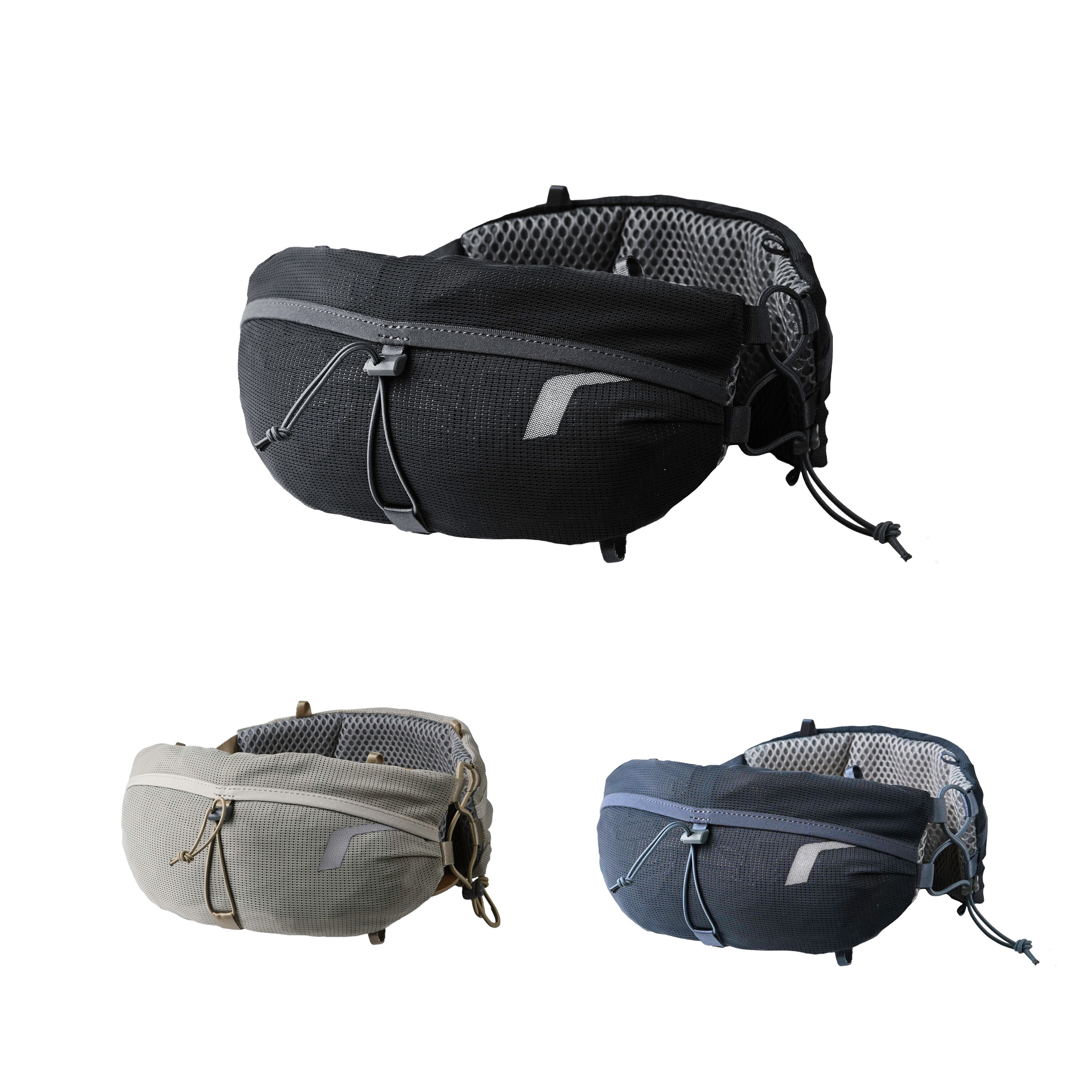 RUSHファミリーはもとより、さまざまなランニングパックと併用できるよう、上下の高さを抑えたデザインにしました。ランニングベルトにありがちな上下の揺れも少なく、ロングレースで活躍すること間違いありません。