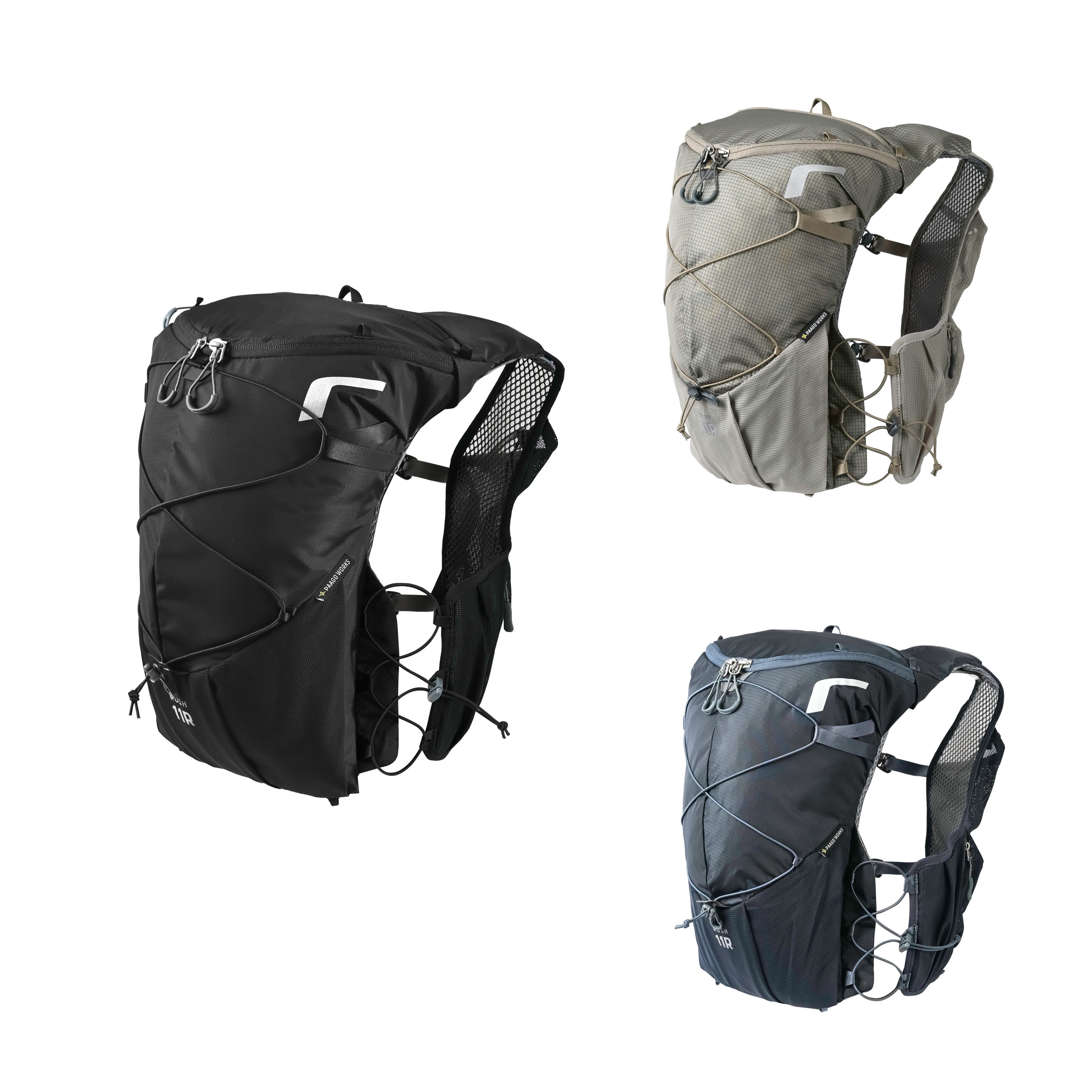 ウルトラトレイルランナー用に開発されたRUSH11Rがフルリニューアル。ユーザーボイスをもとに背負い心地と使い勝手が大幅にアップデートしました。高重心設計とアジャスタブルハーネスにより長時間のレースでもストレスなく使えます。