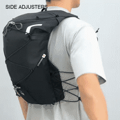 サイドアジャスターには6点式のバンジーコードを採用し、吸い付くようなホールド感と通気性を実現。ウエストにあるドローコードは片手で引けるので、ランニング中でも簡単に調整できます。
