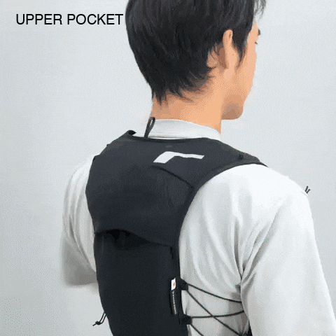 上部のポケットはウインドシェルなどの収納に特化。片手で取り出せる位置と深さを追求し、走りながらでもアイテムを素早く取り出すことができます。