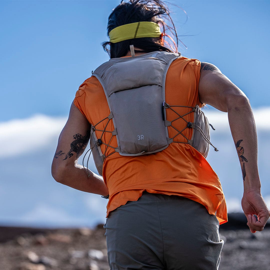 ランナーからの声をもとに、RUSHに最小容量のレーシングベストが登場。腕の可動を妨げない新設計と、激しい運動時でも熱がこもりにくい素材によって、スピードの出るショートレースに最適なモデルを開発しました。