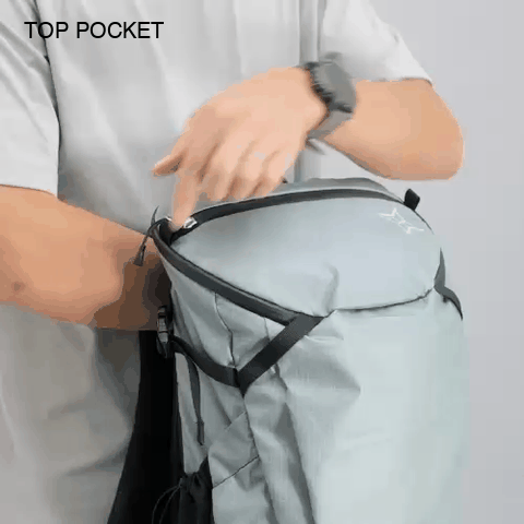 トップポケットはBUDDYゆずりの大きな容量が特徴。行動食やグローブなど、すぐに取り出したい物の収納に最適です。止水ジッパーが雨から荷物を守ります。内側にはキーフック付き。