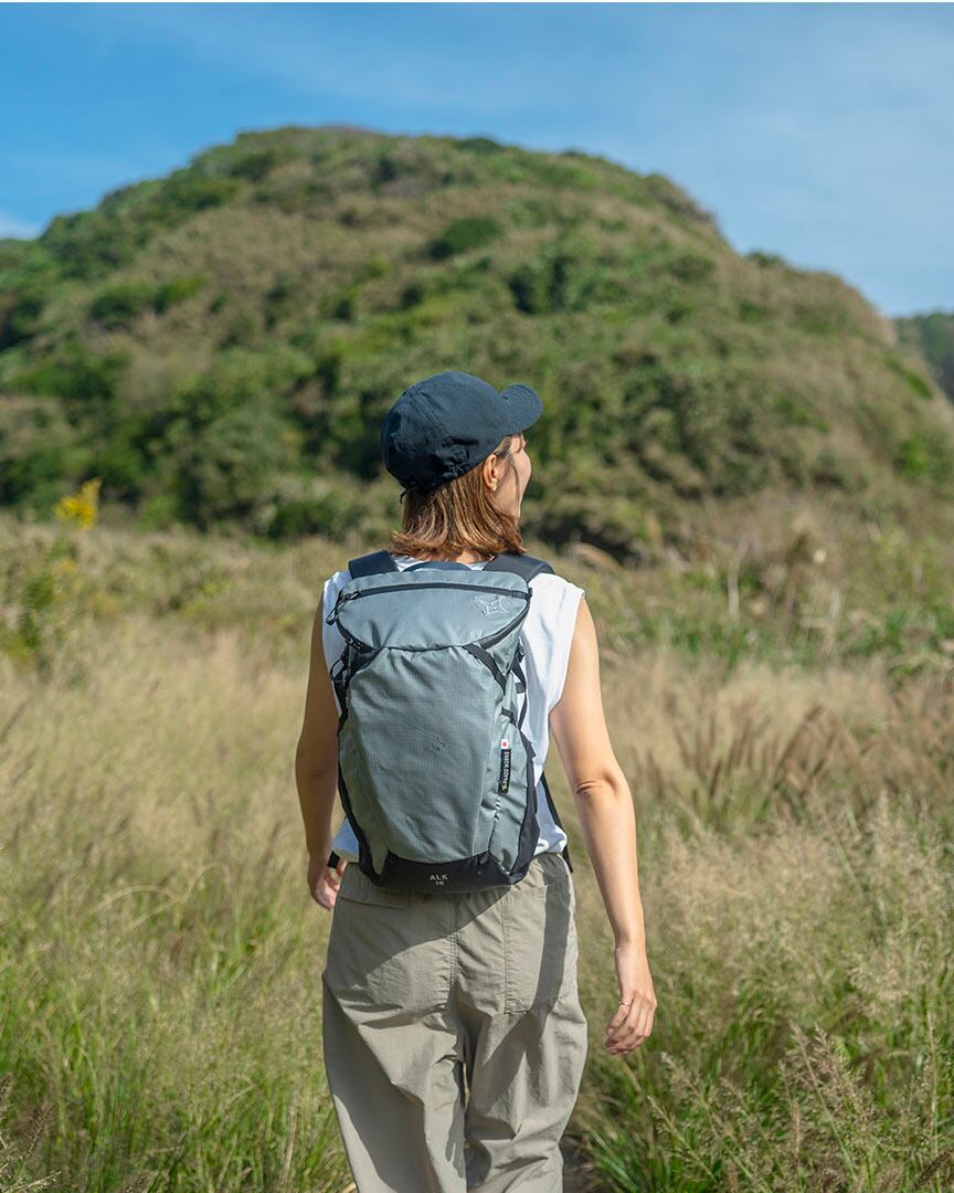 ALK16はシンプルなつくりが特徴のデイパックです。ハイキングに必要な機能をコンパクトにまとめました。普段使いからデイハイクまで気負わず使えるモデルです。