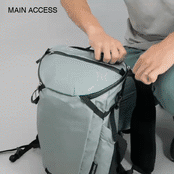 止水ジッパーを使用し、身体側に大きく開くクイックアクセス構造。電車での移動時や山での休憩時に使いやすいのが特徴です 。