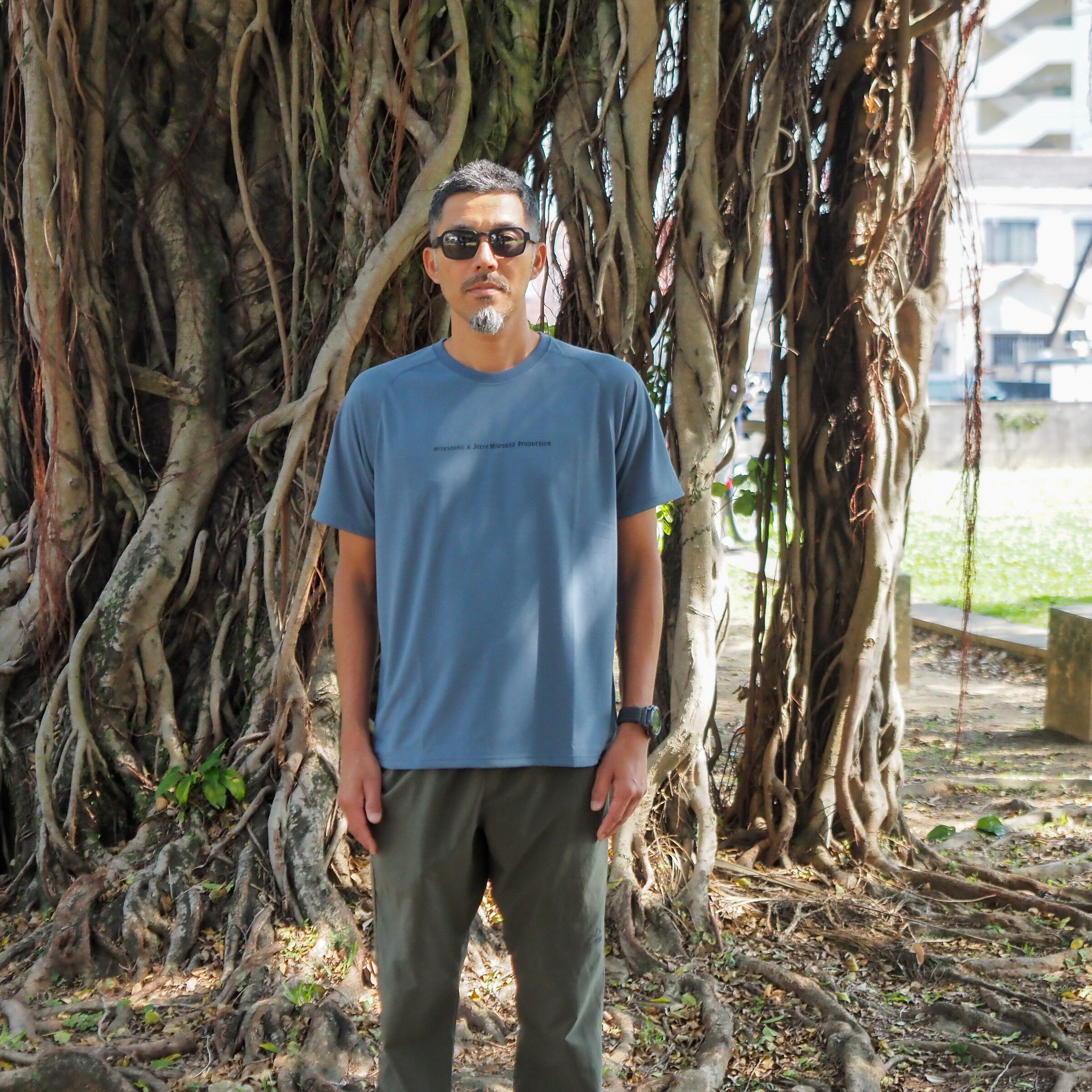 今年は背面にジェリーマルケスをプリント。ボディは定評のあるmilestoneのキャンバスTシャツを使用。 コットンライクなポリエステル生地なのでデイリーにもアクティビティにも使えます。