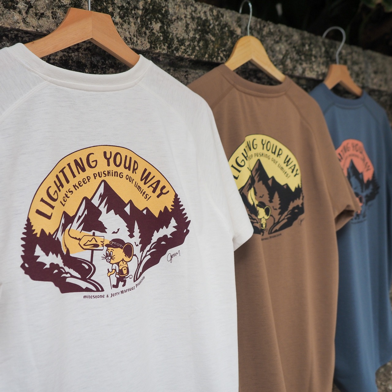 胸の部分には、milestoneのスローガン「Lighting Your Way」がプリントされています。