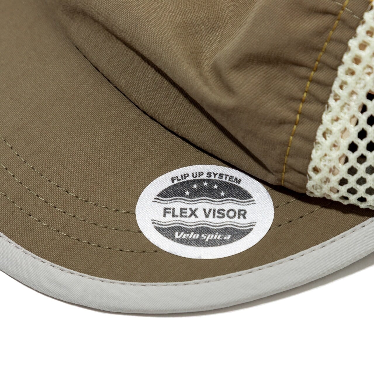 その特徴である小さめのツバ(サイクリングキャップ型)は、目元に必要最小限の日よけと、視野の妨げにならないコンパクトさから自転車やハイクで高い人気を誇るモデルです。定番のフレックス・バイザー(ツバ部分)は内部に特殊な芯材を使う事で、柔らかく折りたたむ事も出来、かつツバの形をしっかりと思い通りにキープ出来ます。 またvelo spica のツバの特徴でもあるフリップ・アップ(視界を広げたい時にはツバを上に跳ね上げる)して被ることも可能です。もちろんヘルメットの下に装着も可能。