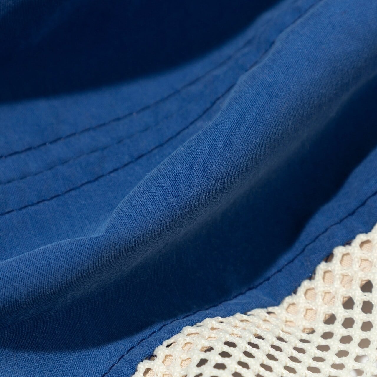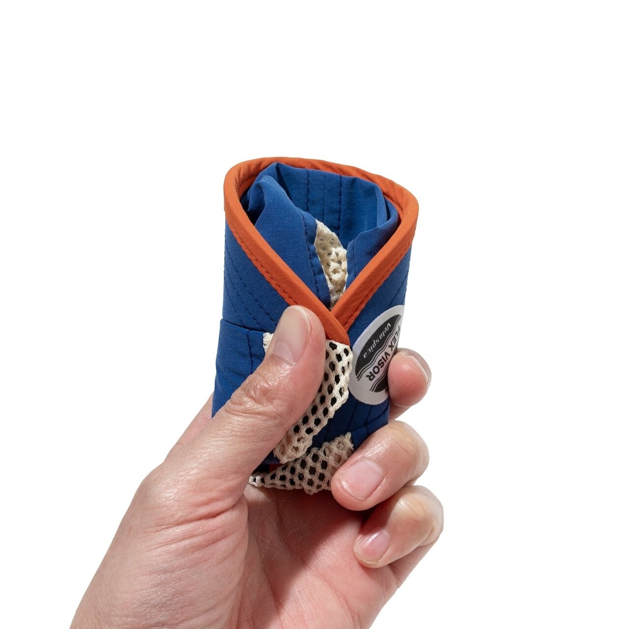※ ツバを丸めて小さく畳む事も可能です。素材の性質上、繰り返し畳む事でナイロン生地・メッシュ生地は柔らかくなっていきます。硬い状態が良い場合は、畳まずにお使い下さい。水洗いしてスチームアイロンをかける事で型崩れはある程度戻ります。