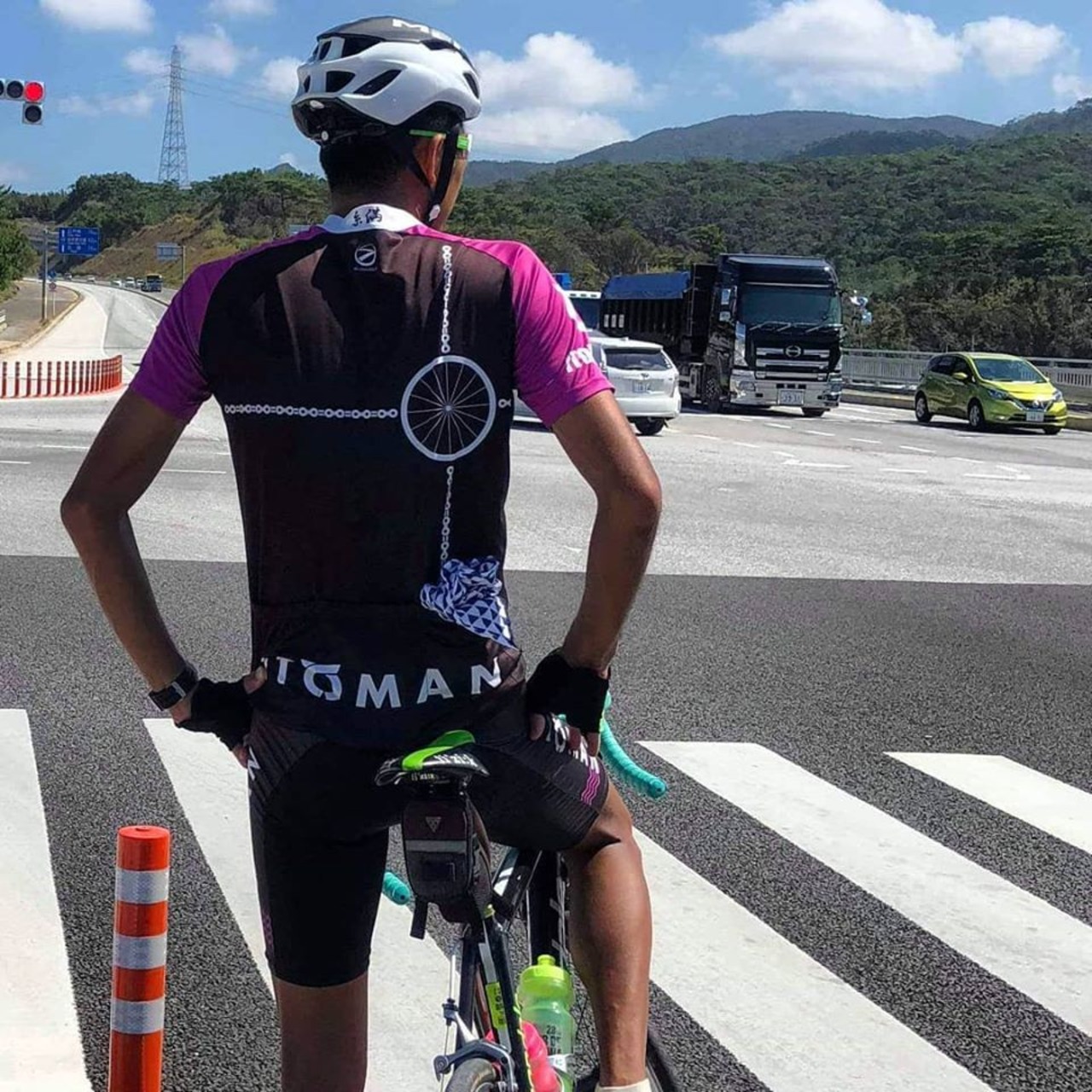 寒い日は、二重巻きにすることで寒さ対策に◎沖縄の場合は、これで十分なことが多いです。走り始めて、汗をかくようならそのまま、スポーツてぬぐいで汗をぬぐえば良いんです。